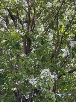 Around the May holidays, the Hitotsubatago (Nanjamonja tree), which blooms with four-lobed white petal flowers, is in full bloom.
