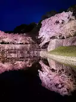 During the event, the cherry blossoms along the moat are lit up, creating a fantastic space 🌸
