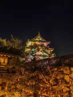 ☑️ One of the highlights of Hikone Castle, the Tenbin Yagura, will be lit up with a dynamic 5m-high light that projects the crest of the Ii family, who are associated with Hikone Castle!
