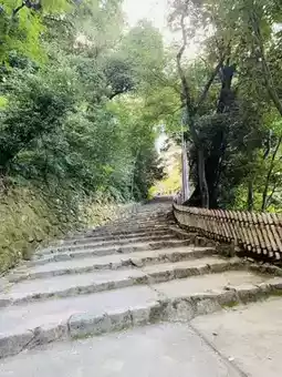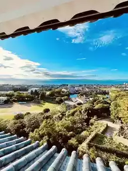 Hikone Castle is a modern castle whose construction began in 1604 and took about 20 years to complete. Because it remains in extremely good condition, it was designated as a national "historic site" in 1951 and a "special historic site" in 1956, and is carefully protected as a national shared asset. It is also listed on the tentative list of Japan's World Heritage Sites and is aiming to be registered as a World Heritage Site. I arrived in the evening and was just in time to enter, so I didn't get to see Hikonyan, but I still enjoyed it. However, it took some physical strength to climb the stone steps on the mountain path to the castle tower. There is a 50m difference in height to the castle tower, and there are about 140 steps in total. I think the stairs are slightly irregular so that enemy soldiers could not rush up the stairs in one go when attacking. However, once you reach the top of the stairs, you can get a panoramic view of Lake Biwa. Even from a high vantage point, Lake Biwa looks like the ocean, and you can really get a sense of its size.