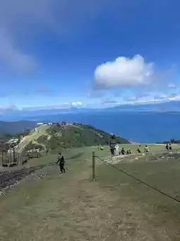 Lake Biwa is located in Shiga and has a vast area. Mount Hira is a great place to enjoy the view of Lake Biwa. Take a bus from Kyoto to Shiga Station, then take a bus to take the cable car to the top of the mountain, which is over a thousand meters high. The mountain cable car only takes 5 minutes! As soon as you arrive, you will be greeted by beautiful views of grass and blue sky!