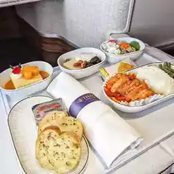 Let me tell you first that this flight is a new Boeing 777-300 and the captain flies smoothly. Take off and land on time. Of course, all the flight attendants are Thai and can speak Thai. Don't worry for those who don't speak English well. 555