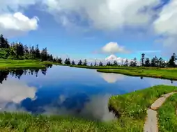 It is a course of about 1 hour to slowly go down the gentle ridge from the top of the mountain to Mt. Nakamon. If you go ahead while looking at the Nakamon Oike, you will reach the top of Mt. Nakamon, which is the final point of climbing Mt. Aizu Komagatake around the quiet wetland.