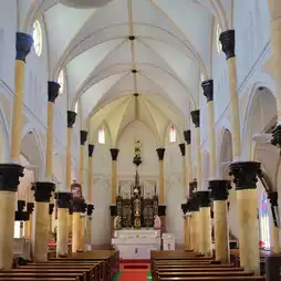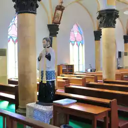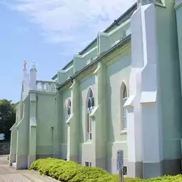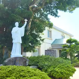 This is a church where you can enjoy artistic sensibility with exotic sculptures and stained glass.