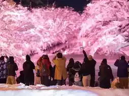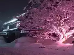 The illumination is at its most breathtaking when the ground is blanketed with snow. Soft pink lights, designed to evoke the image of cherry blossoms, reflect off the pristine white snow, creating the enchanting illusion of "winter sakura." 🎶