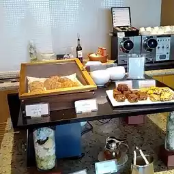 The lounge had a variety of items, including sake, wine, whiskey, beer, bonito tataki salad, pot-au-feu, gratin, potatoes, bread, cake, etc.😊 It's not a large space, but it's a relaxing space.