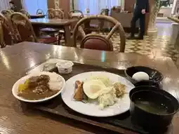 A set meal is provided, but you can help yourself to rice, miso soup, and curry.