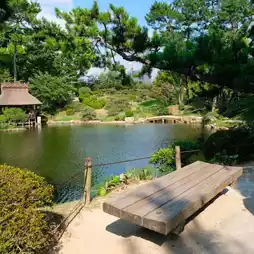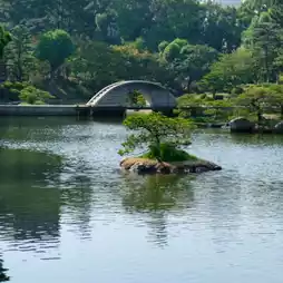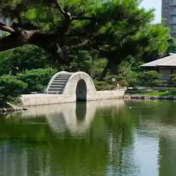 The highlight of this garden is the white marble bridge in the middle of the pond, which is curved like the Kintaikyo Bridge (I made this up, haha). In the spring, this garden is another place to see cherry blossoms in Hiroshima City. Maem saw a lot of cherry trees.