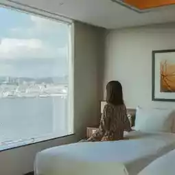 The junior suite room has a large window, and you can see the ships coming and going and the sea from the room and the bathroom. The Seto Inland Sea is calm and really soothing...🥹