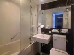 Although the room size is the same as the single, the layout is better, and it’s located on a higher floor. I was assigned a room on the 18th floor, facing a Marriott-affiliated hotel across the way.