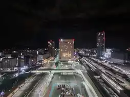 From the hotel, I could see travelers lining up for the Shinkansen below. The Shinkansen continued running until the early hours of the morning, with many people coming and going late into the night.