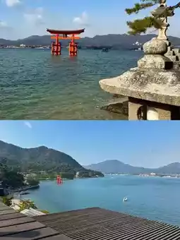 Next, I took a ferry to Miyajima. The iconic red torii gate of Itsukushima Shrine, seemingly floating on the sea, was truly breathtaking. The scenery, which changes with the tides, felt mystical. Around the shrine, deer roamed freely, adding to the tranquil and peaceful atmosphere.