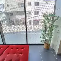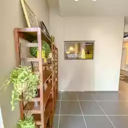 This is the lobby of Hotel Livemax Premium Hiroshima, a hotel near Hiroshima Station known for its natural hot springs. While simple, it's a perfect spot for meetings and other occasions.