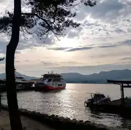 Miyajima and the boats 🛳️ against the wide summer sky! The sunset is stunning ✨