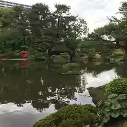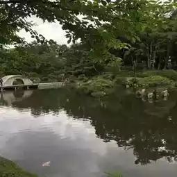 In the middle of the garden is a pool called "Zhuoying Pond". The "Crossing Rainbow Bridge" divides the pool into east and west areas from the middle. There are rockeries on the north, east and west sides of the pool, which are respectively named Zongqi Mountain, Erye Mountain, Inspired by Mishan Mountain, the main building in the garden is the "Qingfeng Pavilion" located on the south side of the Hongqiao Bridge. In the past, there was also the local residence of the Asano family on the south side of the pond, but it was destroyed by the atomic bomb during World War II. [1]