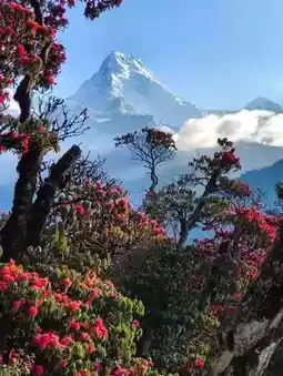 🏔In early April, the alpine rhododendrons blooming at the foot of Mount Boon🌷 are also a famous landmark of Nepal. The alpine rhododendron is also the national flower of Nepal.