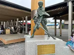There is also a bronze statue of Isayama, the creator of the anime "Attack on Titan," who is from Hita.