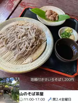 "Yama no Soba Chaya": The only restaurant in the village! The restaurant is located above the river, so you can enjoy delicious soba and udon noodles served in Onta ware while listening to the sound of the river! 🕐: 11:00-17:00 💤: 2nd and 4th Fridays