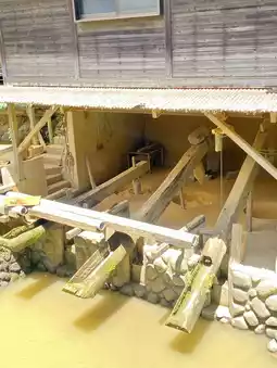 "Usu": Using the power of the river water, the clay that will become the clay is crushed over a period of about two weeks! The sound of this mortar crushing the clay is a sound that symbolizes the village of Onta and has been selected as one of the 100 best soundscapes in Japan that we want to preserve!