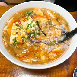 The sour ramen noodles with plenty of tofu and hot sauce also have a unique and delicious sour and spicy taste😊