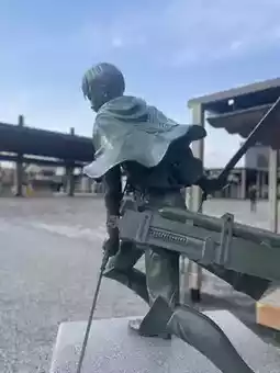🗿【JR Hita Station|Captain Levi's Bronze Statue】You will see it as soon as you exit the station, and the strongest soldier of mankind will welcome you