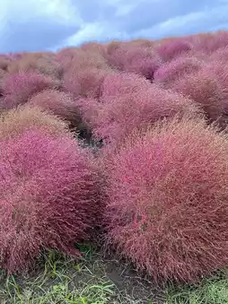 Hitachi Seaside Park, located in Hitachinaka City, Ibaraki Prefecture, is famous for its spring nemophila flowers. But in autumn, it's the season for "Kochia"! These round, bushy plants transition from green to red, creating a charming gradient.