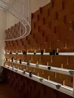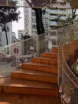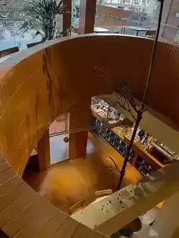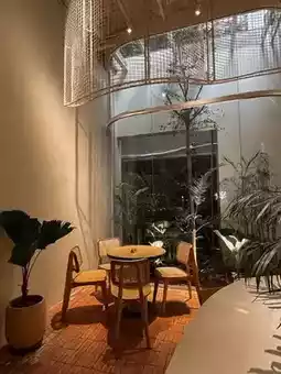 This cafe in Ho Chi Minh City boasts a beautiful facade and interior that will leave you in awe. The terracotta color scheme combined with the white metal grid cascading around the building creates a unique and stunning look. Inside, the café has a cozy and welcoming atmosphere with plenty of seating options.