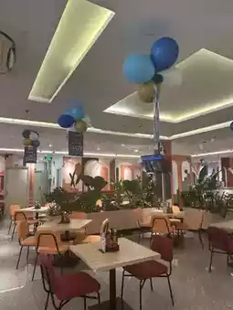 The inside of the cafe is spacious and you can put your cart in the airport.