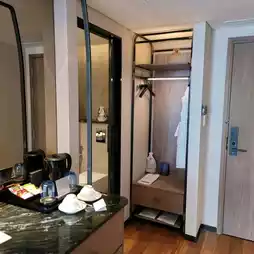 I stayed at a 5-star hotel for about 100,000 won, which was a good value. Check-in was a bit slow, but it was newly built this year, so the room condition was good. The location is close to Ben Thanh Market and the Korean Consulate. There is a cocktail bar above, and they have happy hour.