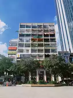 This is an old apartment located on Nguyen Hue Street, Ben Nghe, District 1. Every floor has been converted into a cafe and restaurant, with 9 floors. I must say that cafe lovers will love it because there are cafes to choose from throughout the building without having to go anywhere else.