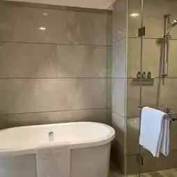 The hotel had a spacious room and bathroom, and a clean interior that I really liked