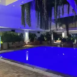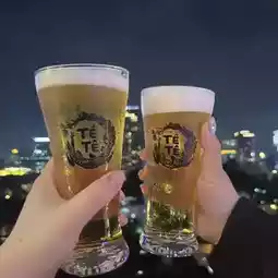 There weren't many people at the pool, so we were the only ones there, and there was a bar, so we had a beer while looking at the night view🍻