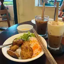 Gotta try their egg coffee! Creamy w strong coffee aroma! We love it! (Their vermicelli is great too!)