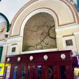 The Saigon Central Post Office has an impressive atmosphere, with a portrait of Ho Chi Minh on display inside the arched building.