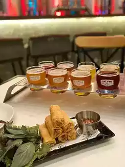 Cozy and chill ambiance, trendy and fun place to visit for beer enthusiasts! Honestly, wasn’t expecting to visit a beer brewery place in Ho Chi Minh City but this was a pleasant surprise! Chic place with high ceilings and quite spacious, they were full house when we visited so you might want to make a reservations before visiting! They offer a great variety of beers! We tried the King’s Flight (consisting of 10 beers samplers), which was pretty fun and interesting! One of the beer was pretty spicy (I forgot which one) but it was very unique! The food that we ordered (fried spring roll and tapas kind of food- shrimps) were good pairing to the beers and tasted yums! We enjoyed the night very much, would recommend to visit this place! ✨