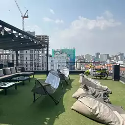 And the surprise doesn't end there. The ninth floor is a small paradise, providing unlimited potato chips, various drinks, milk, instant noodles... everything you need, allowing us to replenish our energy at any time and enjoy a leisurely holiday. On the roof, a rest area is specially designed for friends to gather, equipped with hammocks and lazy chairs. Whether it is sunrise or night, it is the perfect place to enjoy family happiness.