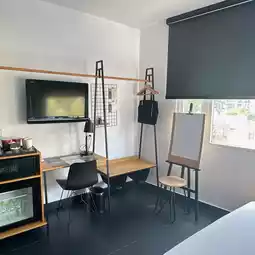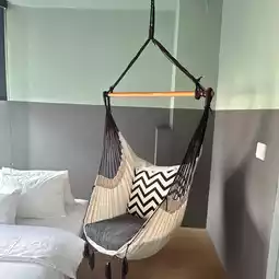 Entering the room, there is not only a hammock but also an easel, waiting for artists to explore.