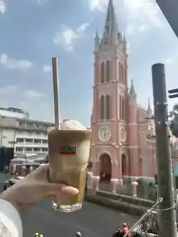 Cong cafe is located diagonally in front of the lovely pink Tan Dinh Church!