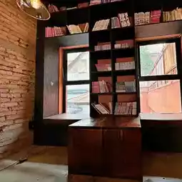 A place where the large bookshelf that fills one wall and the small desks in front catch your eye❤️