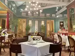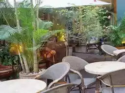 A restaurant and cafe with a garden cafe-like space with green interiors💕