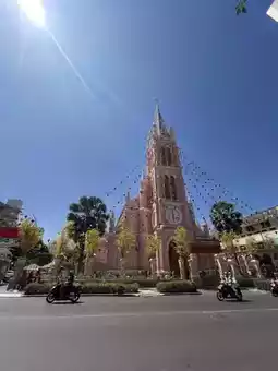 A unique "pink church" in the Roman architectural style in Ho Chi Minh City.