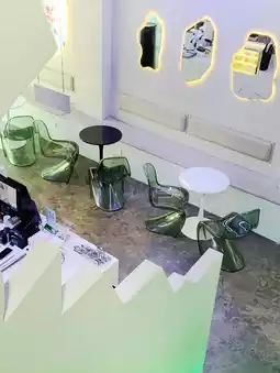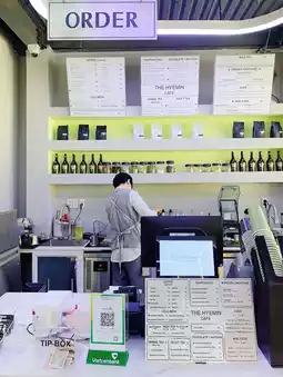 The day I went, I ordered 1 Chocolate Coconut Blend 70k its okey +1 Lychee Crush (lychee, rose, apricot) 80k (almost no apricot, rose, only watermelon and lychee) 6/10. The shop does not have cakes or salty foods.