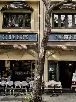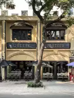 ☕️ Introducing Cheese Coffee, a quiet bakery cafe in Ho Chi Minh, Vietnam with a French-style interior and exterior! It is a charming place with an open-air terrace where you can see passersby and the street from up close, and you can create a European atmosphere and enjoy a moment of leisure! 💚 The interior that utilizes appropriate lighting and curves is impressive, and the desserts using coffee and cheese are delicious, so I recommend you stop by!