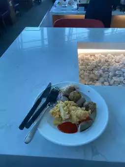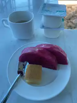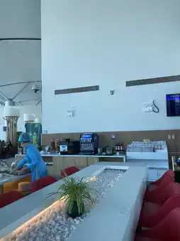 Today we came in the morning (the lounge here is open 24 hours). There were dragon fruit, pineapple, yogurt, cereal, alternating pho and noodles. There were also many hot dishes to choose from.