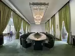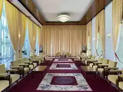 As the residence of important people in Eastern countries, the room design has a strong oriental color: for example, the number of rooms, calculated according to feng shui; important diplomatic rooms, former president's family living room, the designer incorporated many traditional Chinese elements, such as the use of large landscape painting accents, even the central lobby shop circular Kowloon rug, imprinting the sky, the traditional image of the dragon as the sacred symbol of the East.