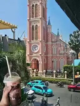 This is 'Cong Cafe' in front of the Pink Cathedral (Tan Dinh Son Dang), one of Ho Chi Minh's representative landmarks 🙂