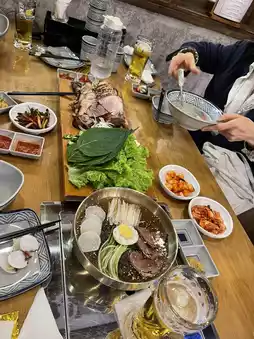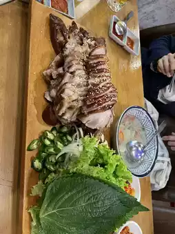 Looking for a getaway during the Dragon Boat Festival holiday? Consider a trip to Vietnam! This time, we visited Ho Chi Minh City and discovered an incredibly tasty Korean restaurant. Located on a street surrounded by numerous Korean eateries, this area truly feels like a Korean food haven. Among the many options, we were drawn to this restaurant known for its delectable pork trotters—and we were not disappointed! The pork trotters here are absolutely amazing. We ordered a large portion, which was more than enough to satisfy our cravings. To complement the meal, we also ordered chilled beer, cold noodles, Korean steamed egg, and fried chicken. This restaurant provided us with a delightful culinary experience! If you're in Ho Chi Minh City, trying these authentic Korean pork trotters is a must! 🇰🇷🐷🍺🍜🥚🍗