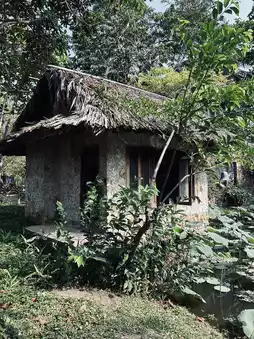 - Stay in wooden houses covered with reeds