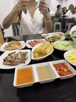 The restaurant's menu focuses on one dish: Bánh ướt, which has a decent selection of side dishes. If you're looking for a wide variety, this might not be the answer. However, if you're specifically looking for this dish, it's worth it. The price is reasonable, and the portions are enough to feed two people.