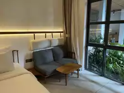 📸 Don't miss the garden pool filled with palm trees and the terrace photo spots in the rooms